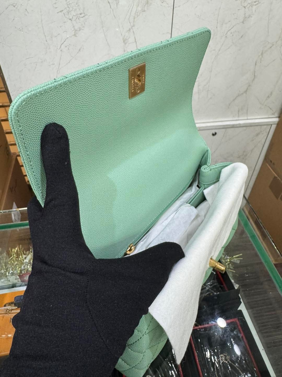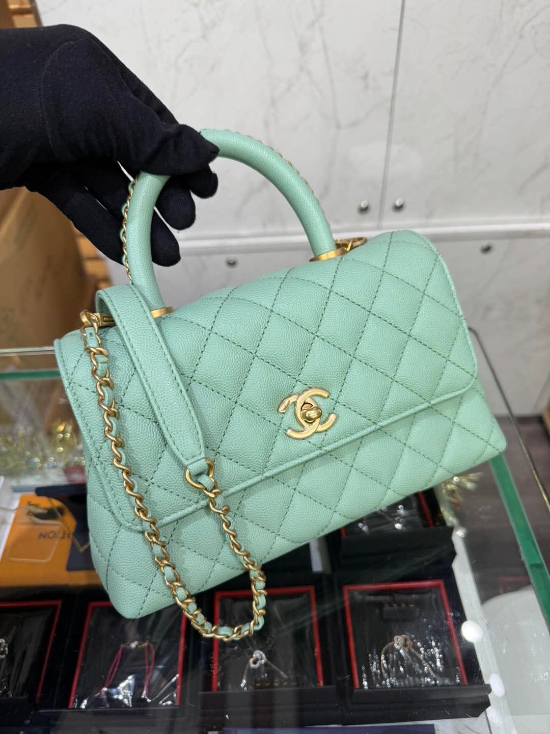 Chanel Small Coco Chain Handle Flap Bag in Light Green Quilted Caviar