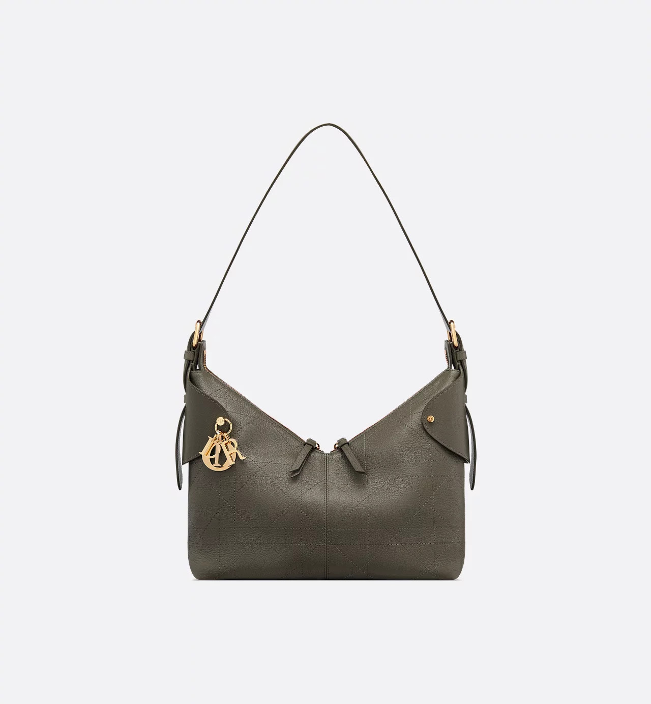 這款 Dior Voyage 手袋是 2026 早春度假系列的全新成員,完美融合了柔和的線條和精緻的細節。手袋採用灰褐色粒面小牛皮製成,飾以扁平的 Macrocannage 藤格紋縫線,重現了品牌標誌性的經典圖案。手袋觸感格外柔軟,飾以金色金屬 DIOR 吊飾和精製皮革細節,更添立體感。主隔層採用雙向拉鍊設計,兼顧實用性與安全性。這款中型手袋配有可調節扣環的頂部提手,可日常肩背。