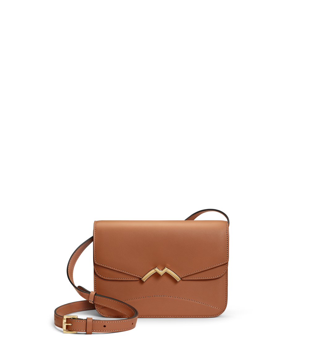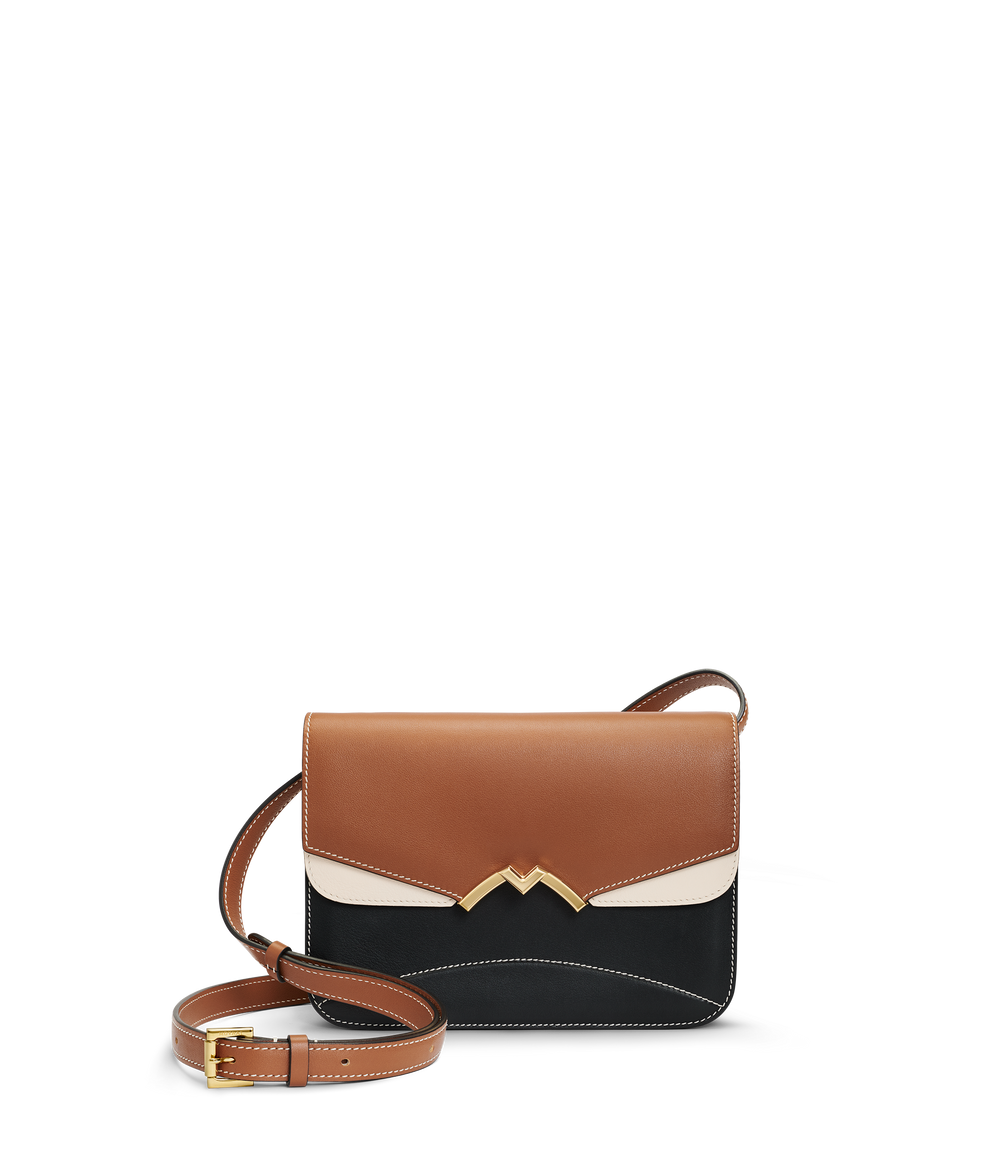 Gabriella 的設計靈感源自 Pauline Moynat 設計的經典 Limousine 旅行箱的優雅曲線,採用精美小牛皮製成,飾有標誌性的金屬「M」形扣環、雙翻蓋設計以及一個外袋,增加了實用性。