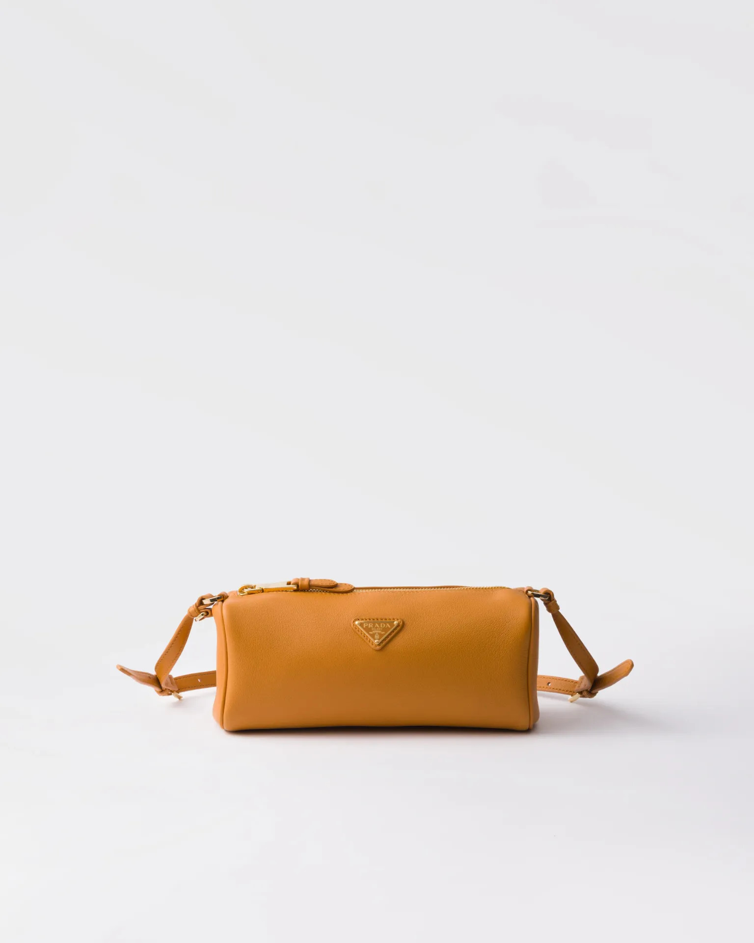 這款皮革小包款採用幾何造型,兼具現代優雅與實用功能。