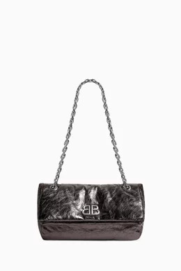 Small Monaco Chain Bag in Metallized Arena Calfskin Leather